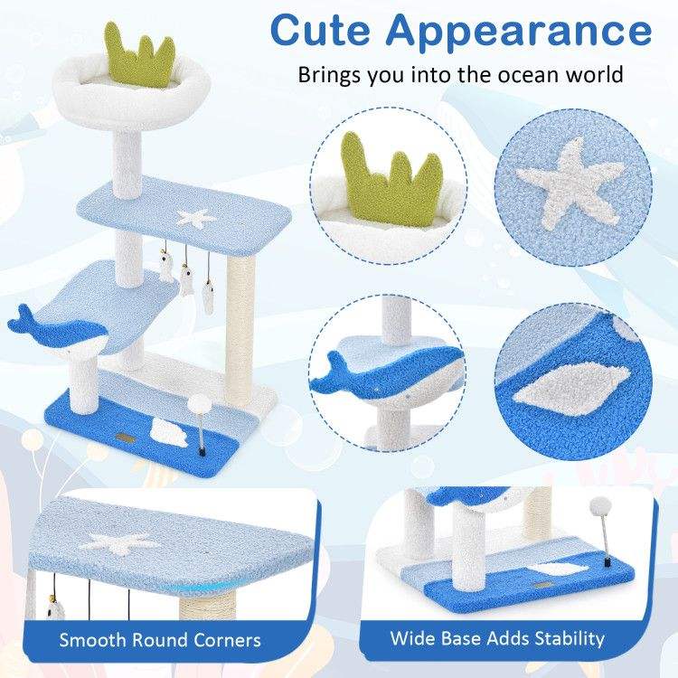 Torre per Gatti a 3 Livelli con Posti di Tiraggio Rivestiti in Sisal, Alberi e Tiragraffi Premium per Gatti