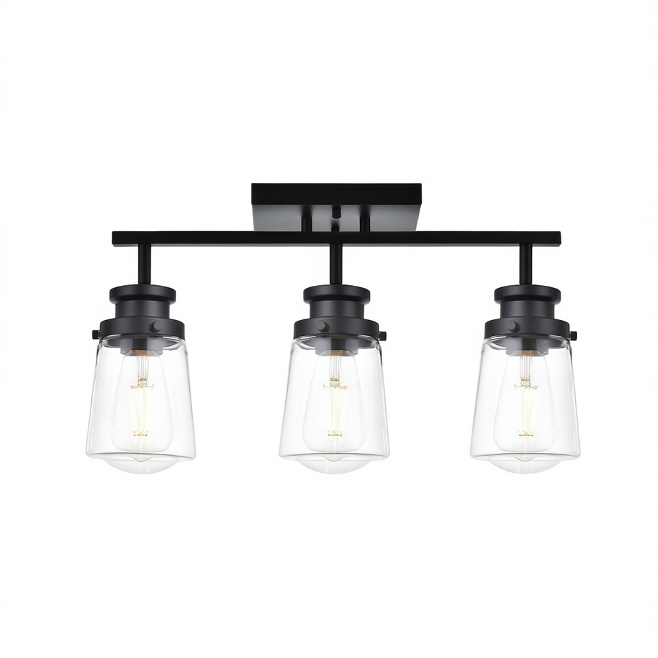 Lampada da soffitto a 3 luci nera con paralume in vetro trasparente, classica in metallo per bagno, LED bianco caldo 2700K