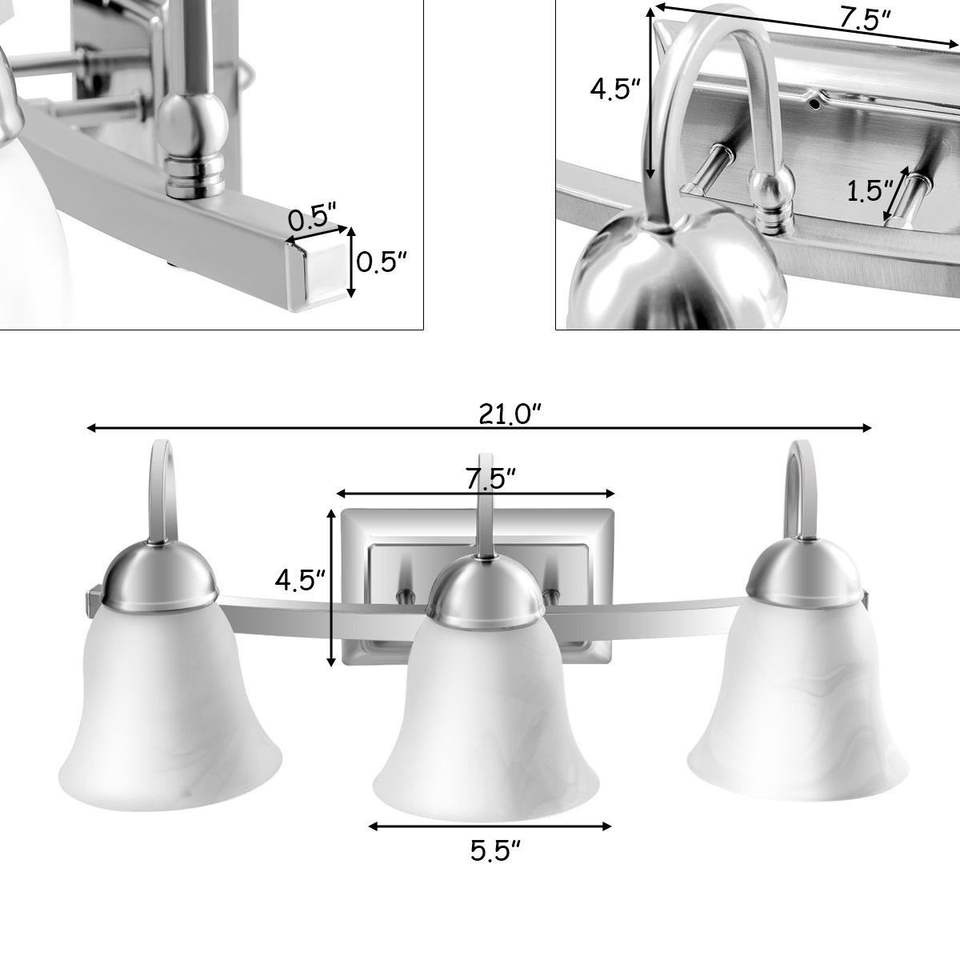 Lampada da Bagno a 3 Luci LED Dimmerabile con Vetro in Alabastro, Illuminazione per Specchio da Bagno