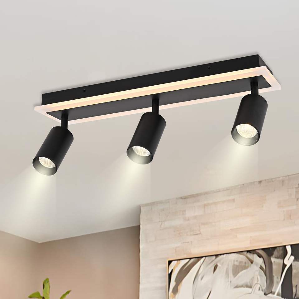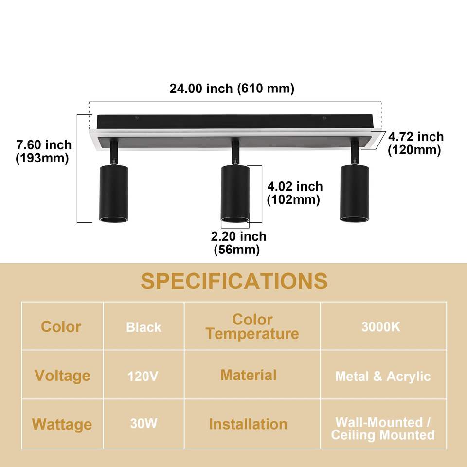 3-Light LED Flexible Track Lighting Fixtures Black Ceiling Directional Spot Light for Kitchen Living Room Wall Mounted Mirror