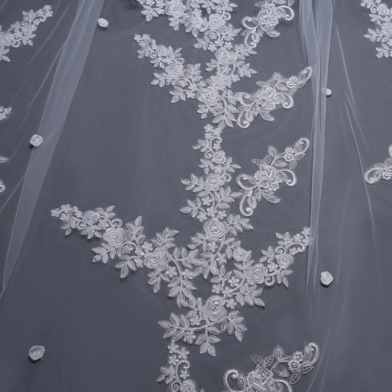 Name:Long 2-layer Embroidery Lace Bridal Wedding Veil