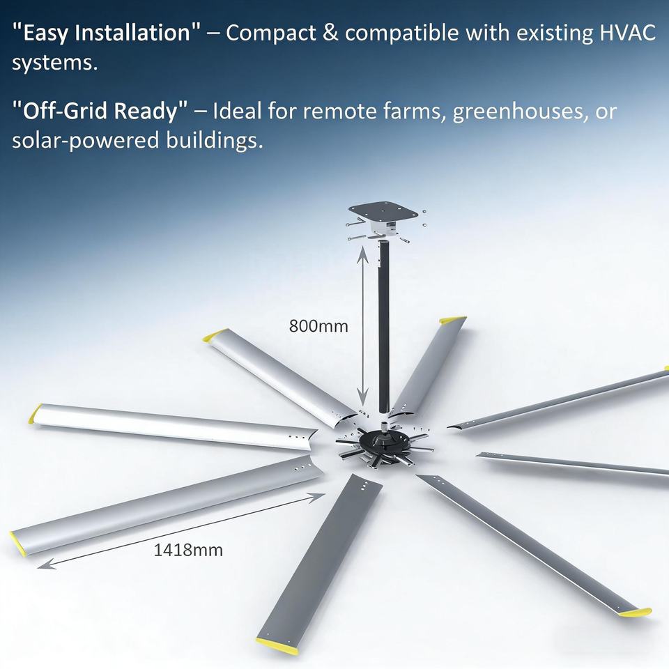 3 Meters Giant Solar Fan with Solar Panel Hvls Outdoor Large Remote Control Ceiling Fan Industrial Poultry Farm Ventilation Fan