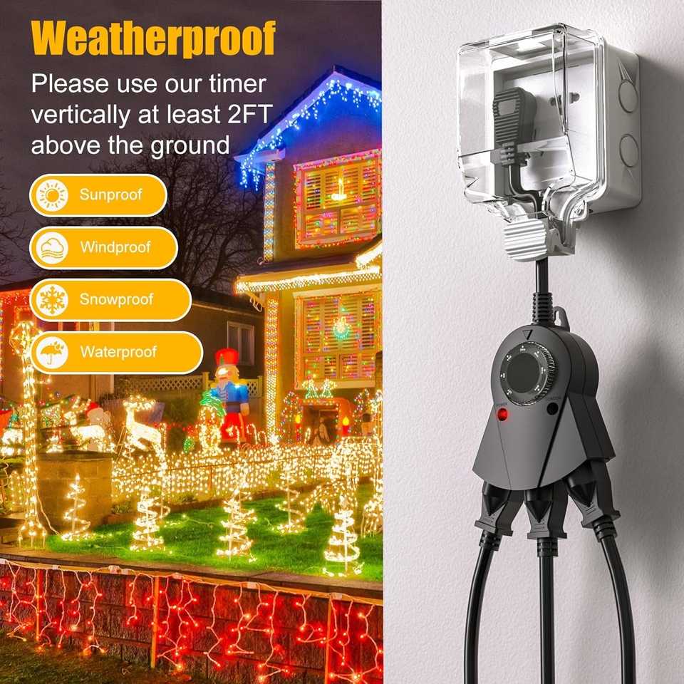 Timer 3 prese luce esterna Timer impermeabile 24 ore Plug-in con 2 4 6 8 ore modalità conto alla rovescia per le luci del giardino