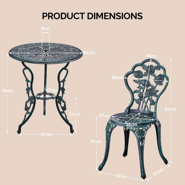 Set da 3 Pezzi in Alluminio Pressofuso per Tutte le Stagioni: Tavolo Bistrot e Sedie, Set da 2 Pezzi per Esterni, Arredamento da Giardino e Patio