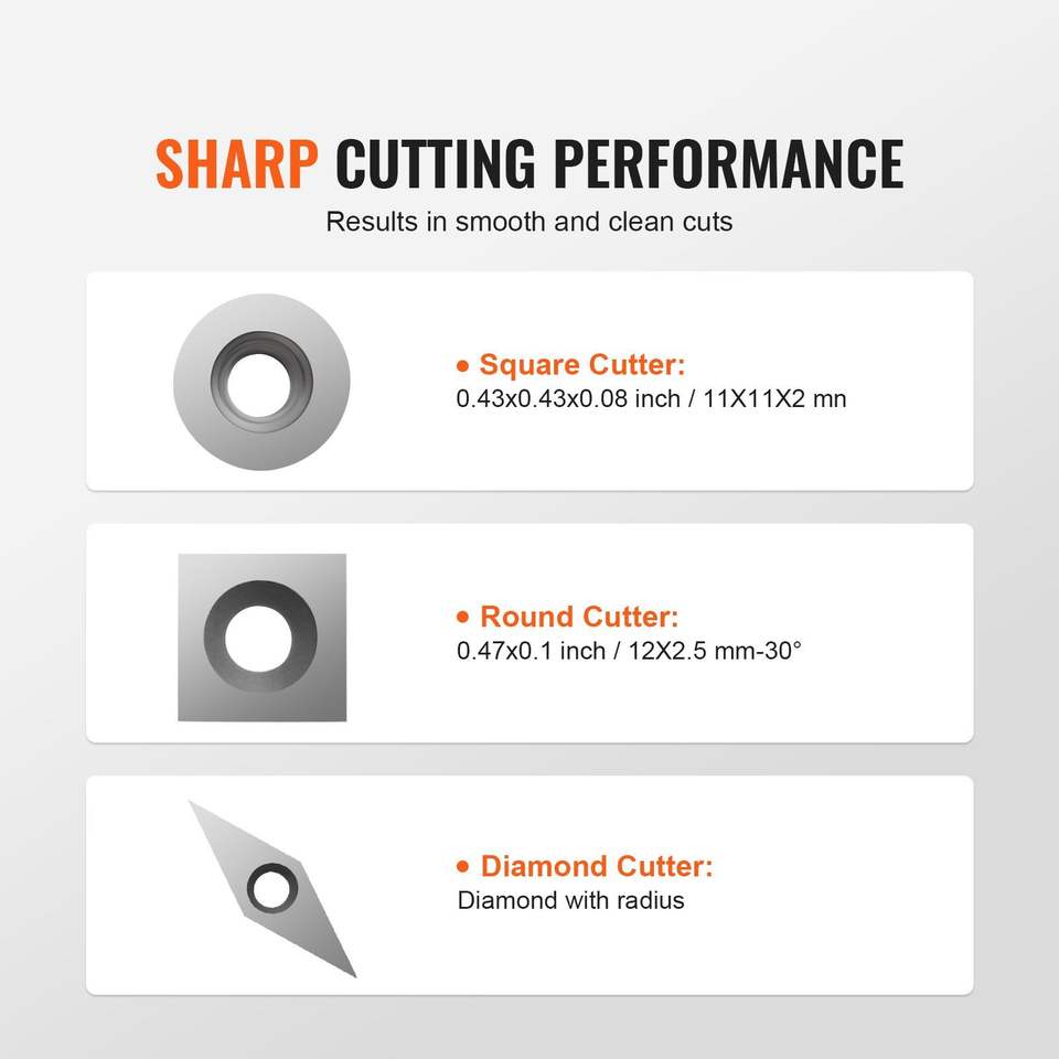 Set di 3 Scalpelli per Tornio in Legno con Impugnatura Confortevole, Include Lame in Carburo Quadrate, Rotonde e a Diamante, Strumenti per Lavorazione del Legno da 7,87 Pollici