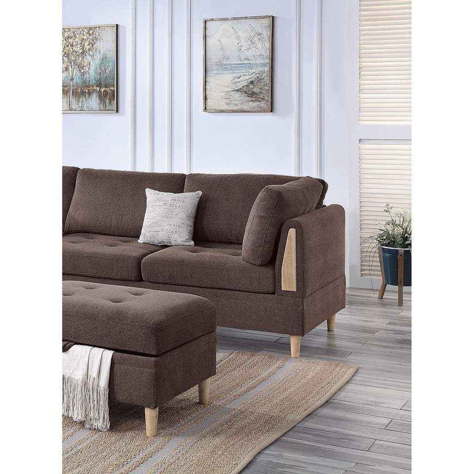 Set Divano Componibile Reversibile 3 Pezzi, Arredamento Soggiorno, Divano in Ciniglia Color Cioccolato con Chaise Longue Reversibile