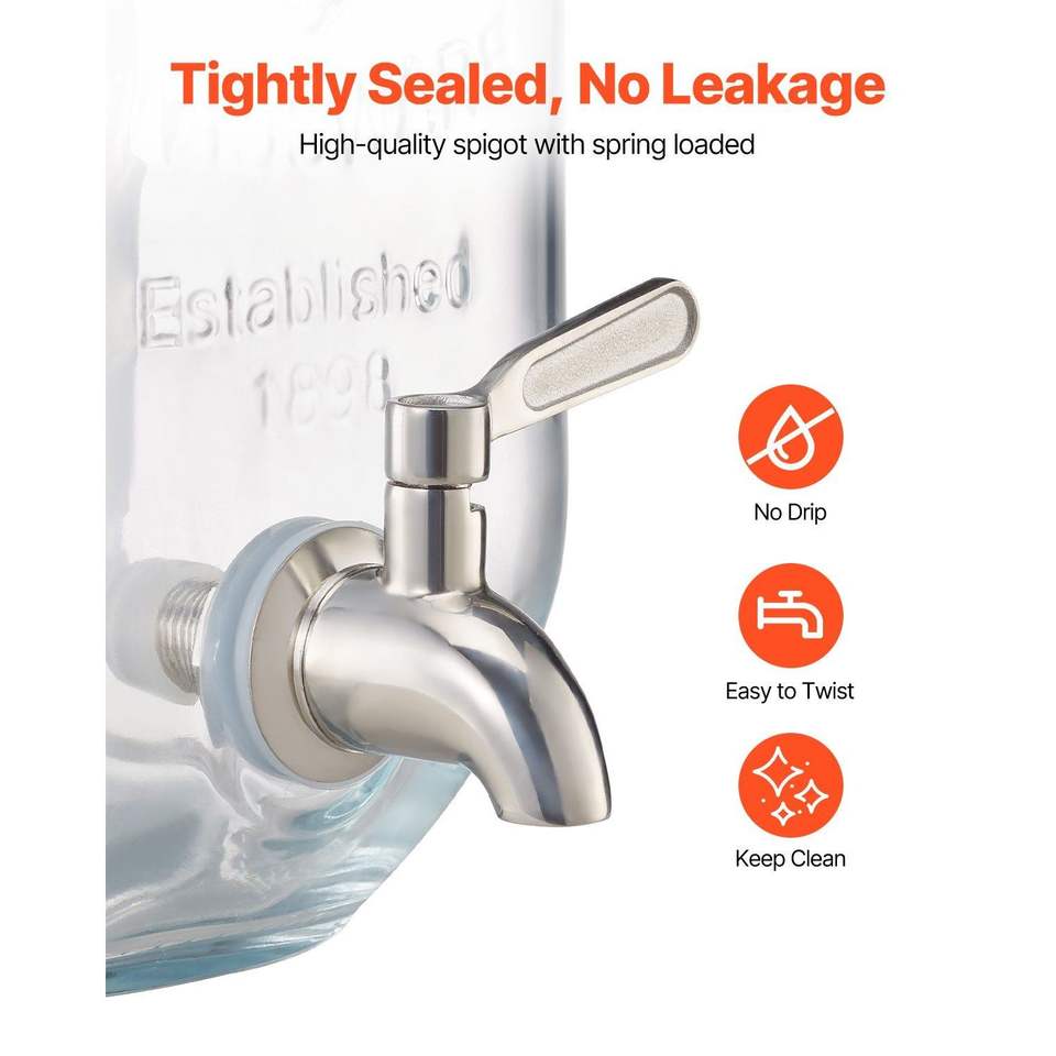 Set di 3 Dispenser per Bevande in Acciaio Inox da 1 Gallone con Supporto in Legno per Feste e Servizio Bevande