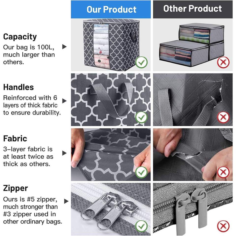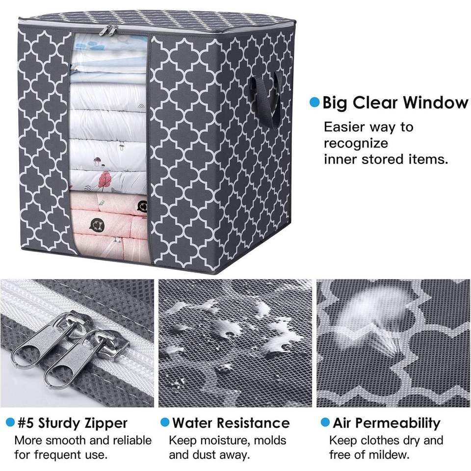 Set di 3 Grandi Sacchi Contenitori da 100L per Vestiti e Piumoni, Organizzatori Pieghevoli per Coperte, Soluzione di Stoccaggio