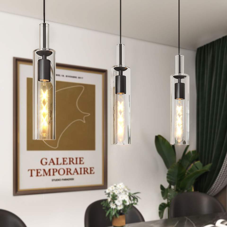 Set di 3 Lampade a Sospensione Moderne in Vetro Nero, Illuminazione per Isola Cucina, Stile Industriale Regolabile, Lampadine Non Incluse