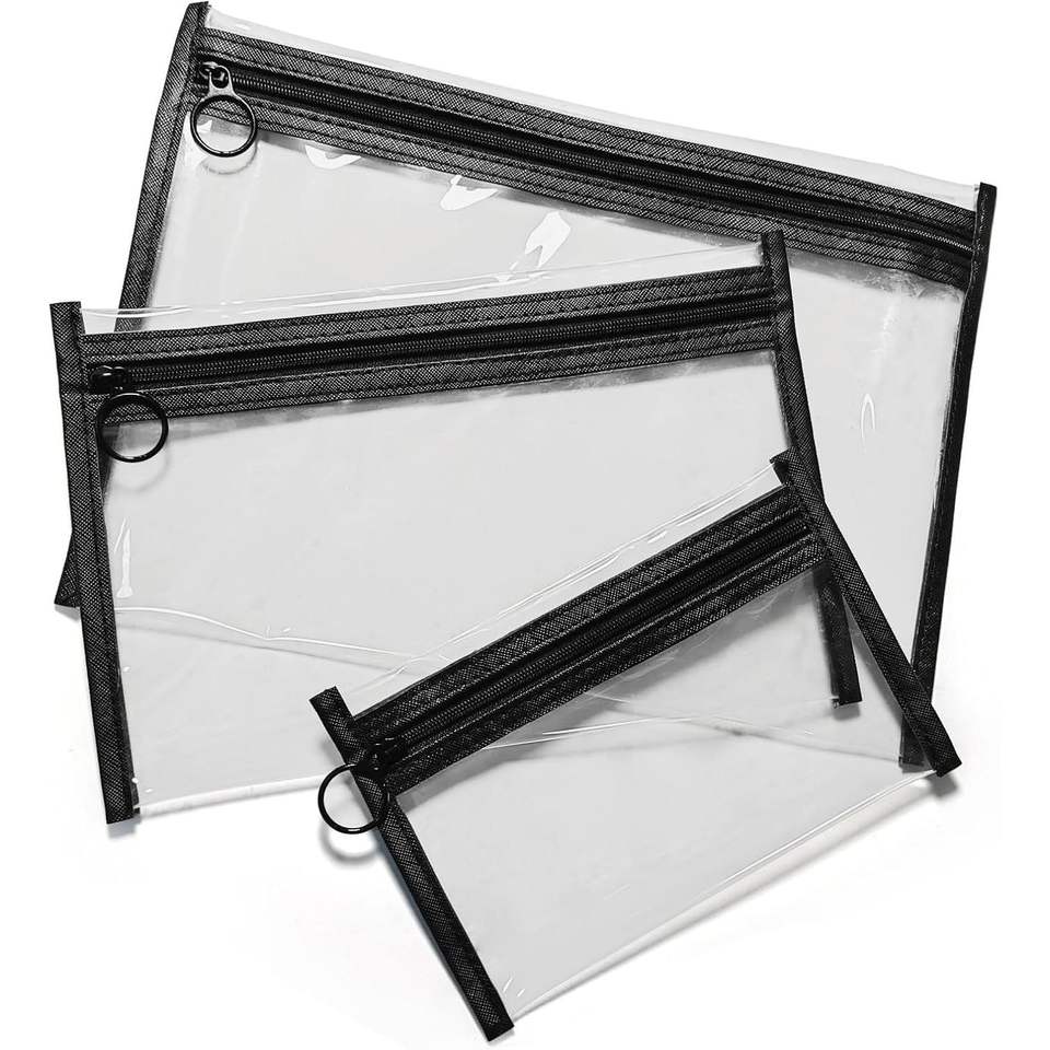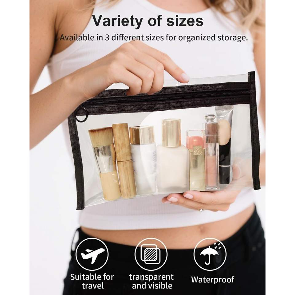 Set di 3 Piccole Borse per Cosmetici in PVC Trasparente, Impermeabili, con Cerniera, per Articoli da Toeletta e Viaggio, per Donne e Uomini