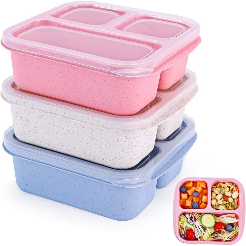 Set di 3 Contenitori per Snack, Lunch Box con 3 Scomparti per Porzioni Controllate, Ideale per Scuola, Viaggi e Preparazione Pasti On-the-Go