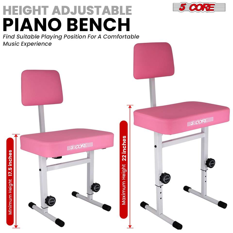 Panca per pianoforte imbottita a 3 imbottiti con schienale pesante per musicista sedia regolabile in altezza-rosa B-REST PNK