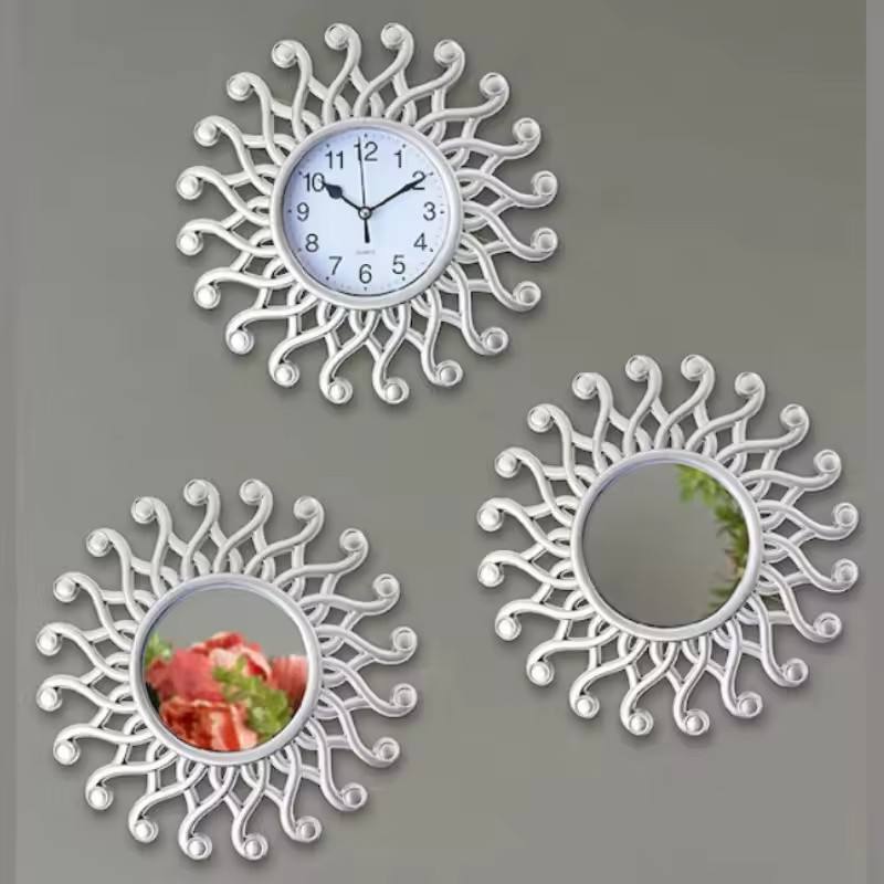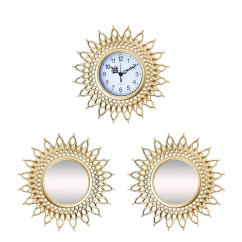 3 Pcs European Elegant Luxury Hotel Bathroom Decorative Clocks Antique Gold Frame Round Creative Vintage Wall Clock