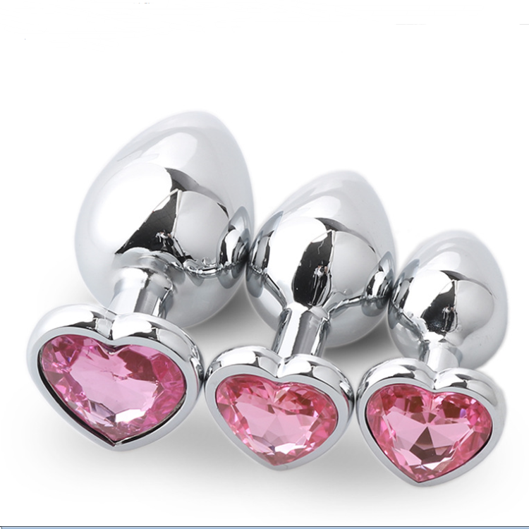 Set di 3 Plug Anali in Acciaio Inox Placcato con Gioielli, Dilatatore Anale in Metallo Pesante, Prodotti Sessuali per Uomini e Donne, Giocattolo Erotico