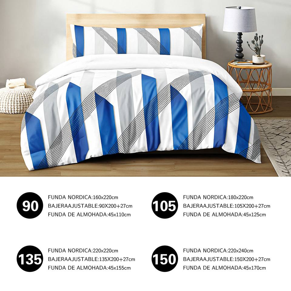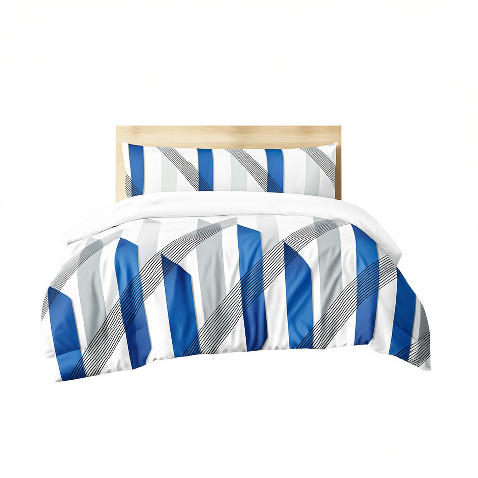 Set copripiumino moderno a righe in 100% poliestere, 3 pezzi, con lenzuolo con angoli e federa, lavabile, biancheria da letto di lusso per la casa