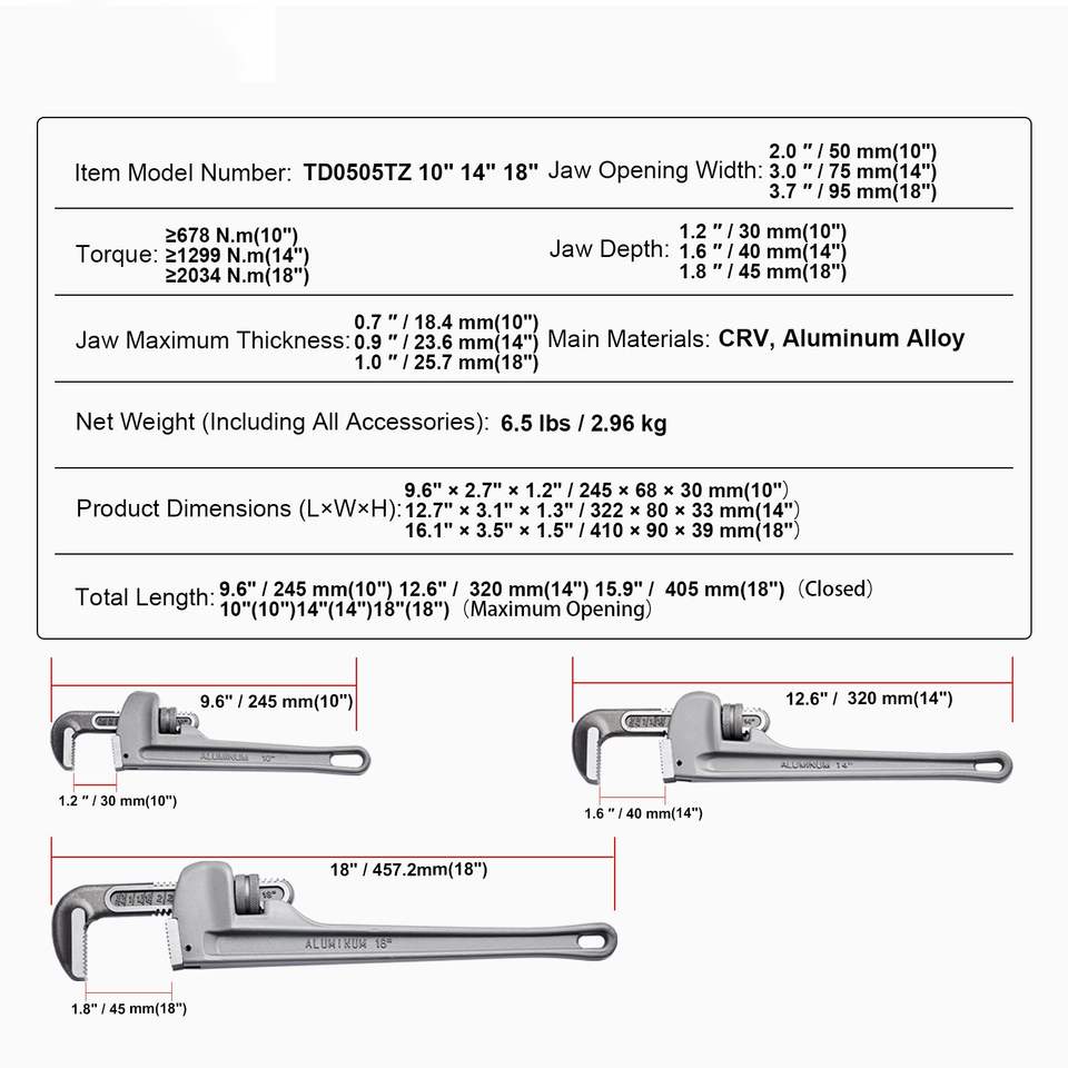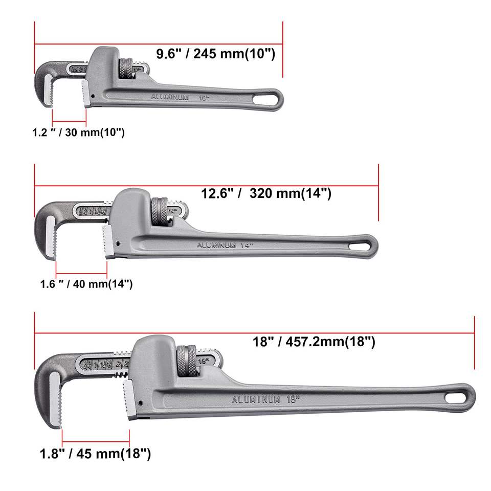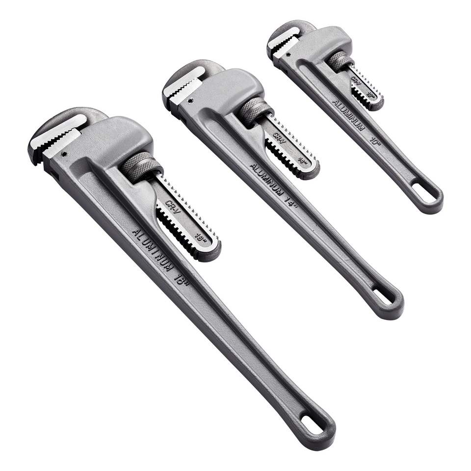 Set di 3 Chiavi Idrauliche Regolabili da 10, 14 e 18 Pollici in Alluminio con Ganascia ad Alta Resistenza Ergo