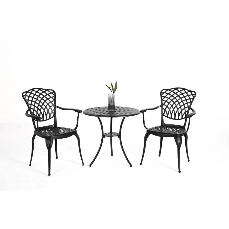 Set Bistrot in Alluminio Pressofuso per Tutte le Stagioni, 3 Pezzi, Include Tavolo e 2 Sedie con Foro per Ombrellone, per Patio o Giardino