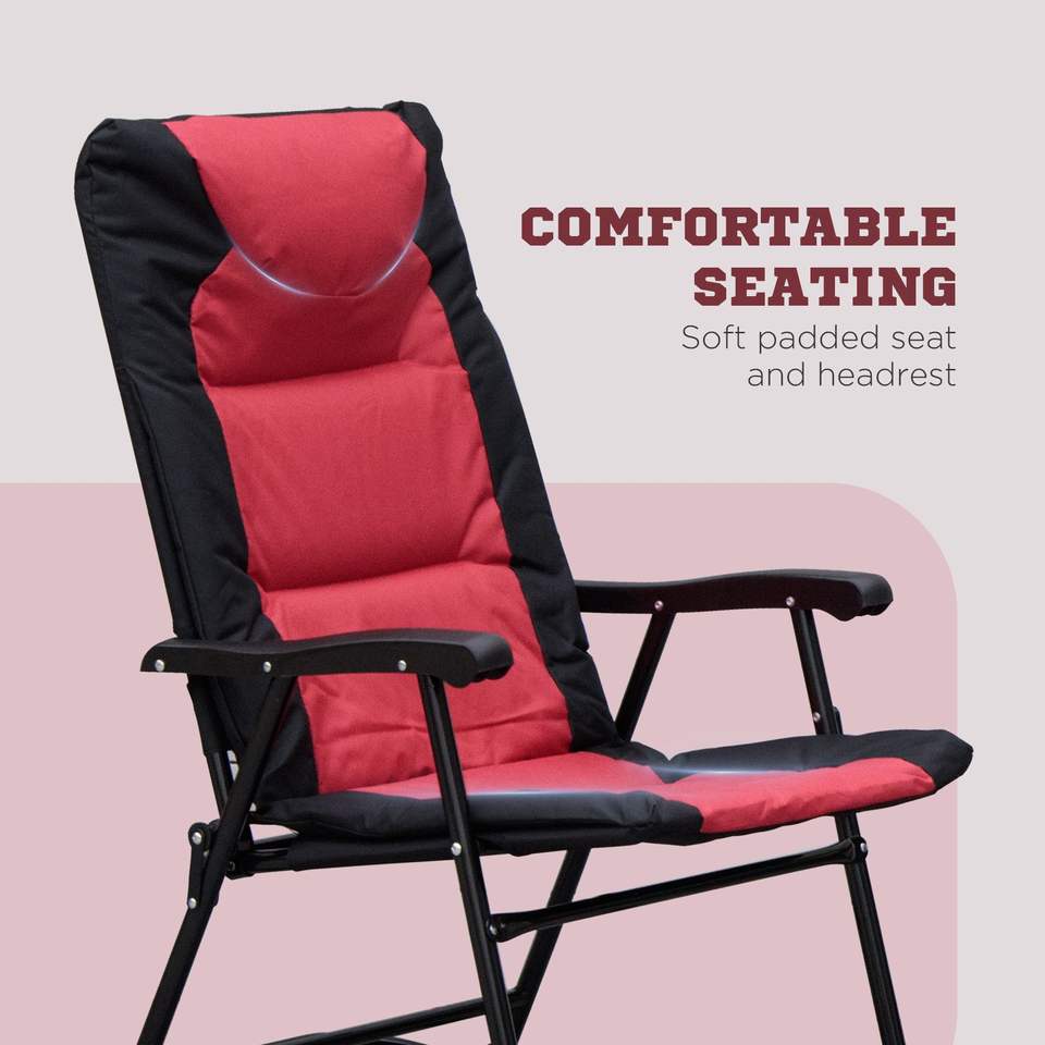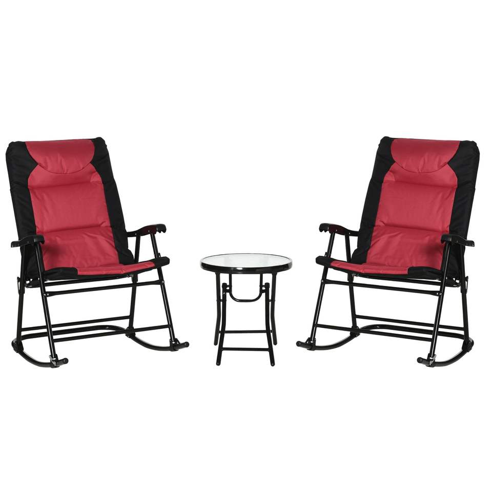 Set di Mobili da Esterno Stile Bistrot in 3 Pezzi: Tavolino in Vetro e 2 Sedie a Dondolo Pieghevoli Imbottite per Veranda e Campeggio