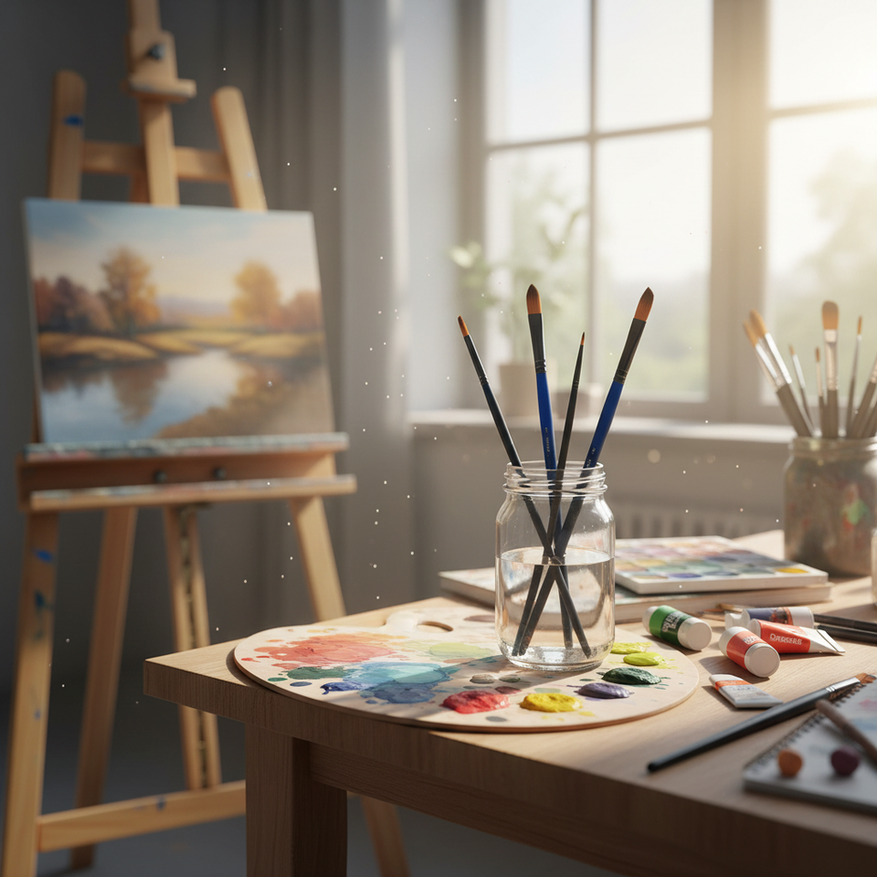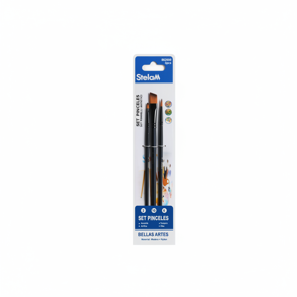 Set di 3 pennelli neri per artisti pennelli in Nylon e legno per pittura ad acquerello e acrilico con manico blu