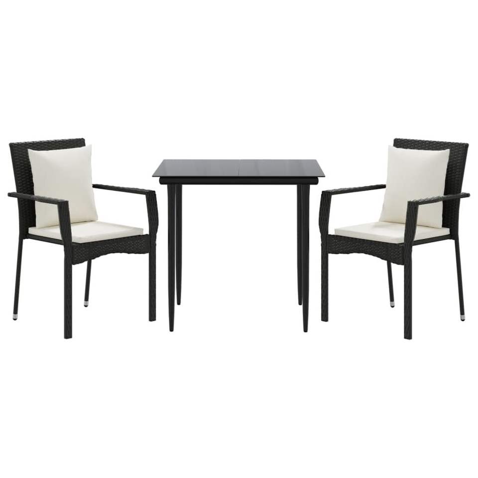 Set da pranzo da 3 pezzi in Poly Rattan nero con cuscini Set da giardino