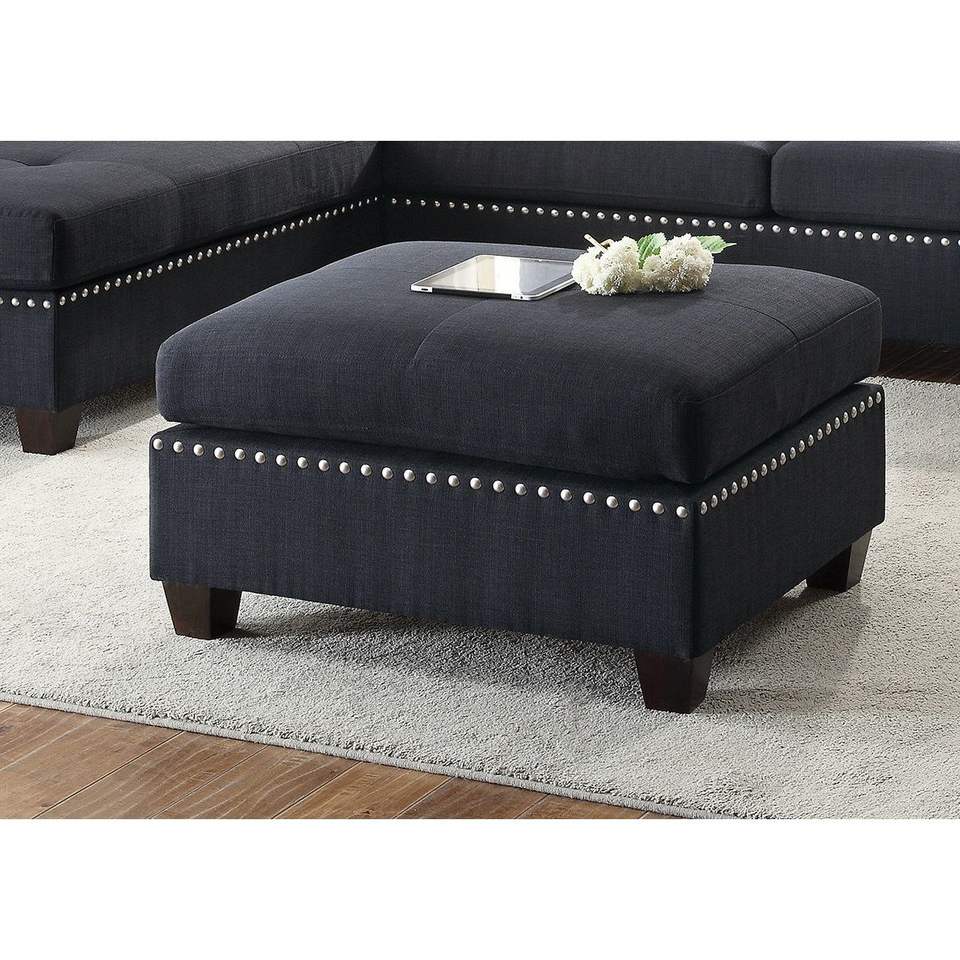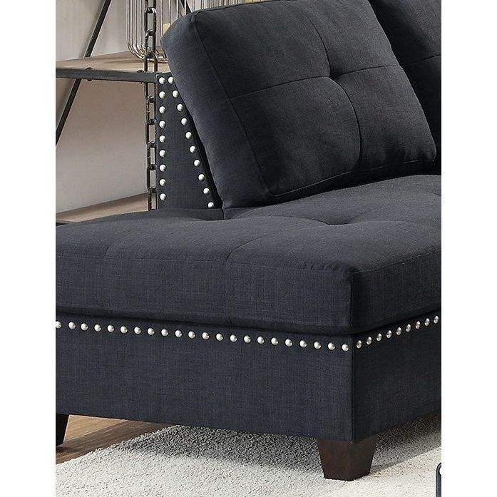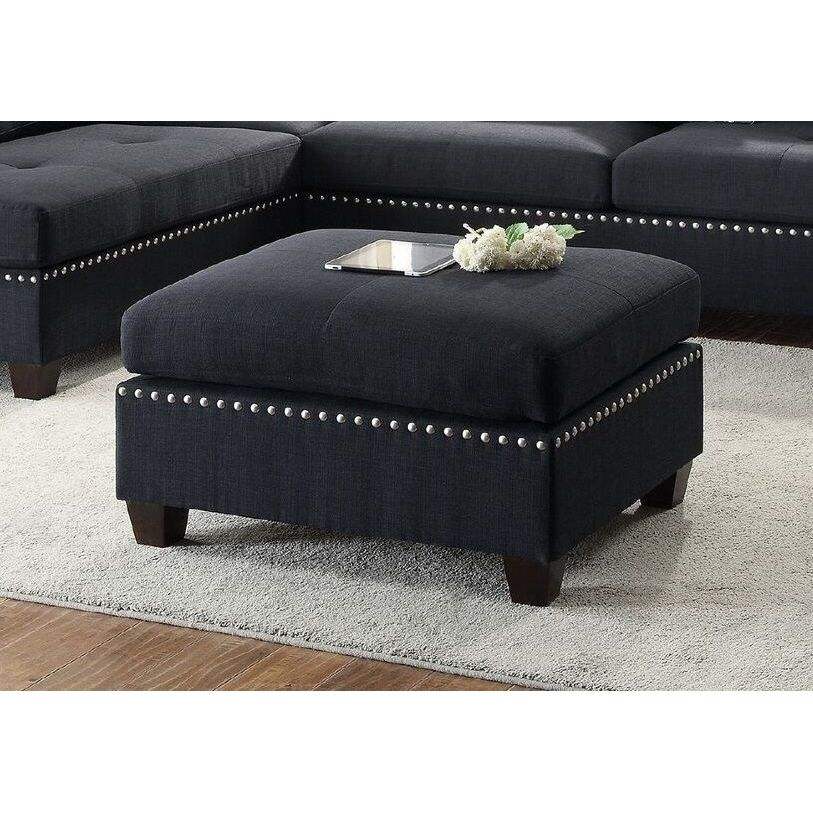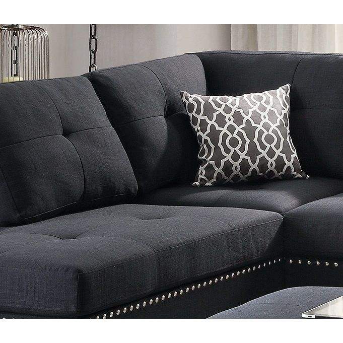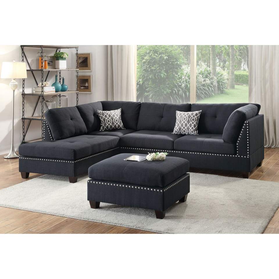 Set Divano Sezionale a 3 Pezzi in Polifibra Nera con Chaise Longue Reversibile, Pouf e Cuscini per Soggiorno