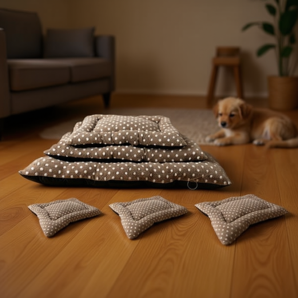 3-Piece Brown Dot Jacquard Cotton Velvet Dog Mat Set for Pet Beds