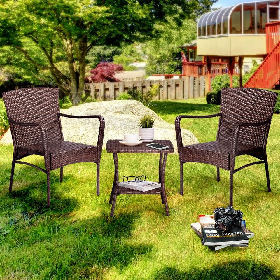 3-Piece Brown Outdoor Seating Group PE Rattan Patio Furniture Wicker Patio Chairs Set Brown Garden Bistro Conversation Sets