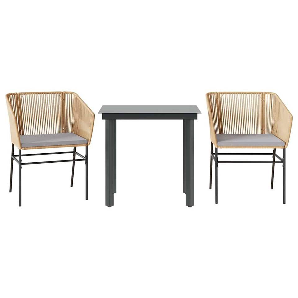 Set da pranzo da giardino in rattan marrone a 3 pezzi, con struttura in acciaio, mobili da esterno contemporanei, resistenti alle intemperie, 2 posti