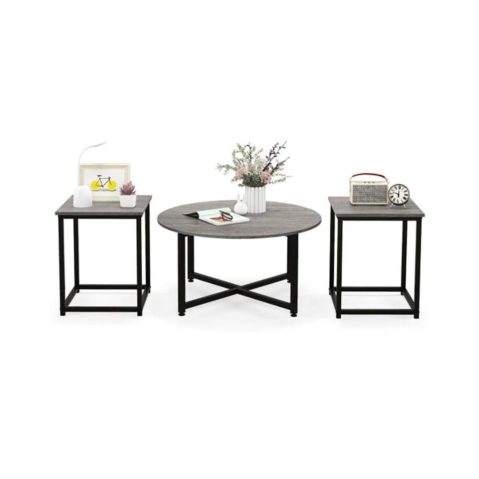 Set di 3 tavolini da caffè: tavolino rotondo e 2 tavolini quadrati