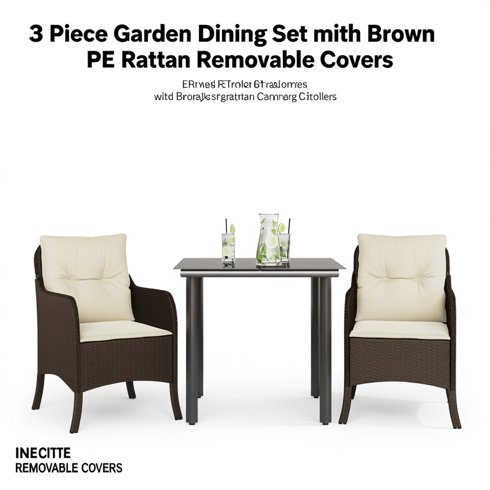 Set da pranzo da giardino in 3 pezzi, in rattan PE marrone, con coperture rimovibili, mobili da esterno