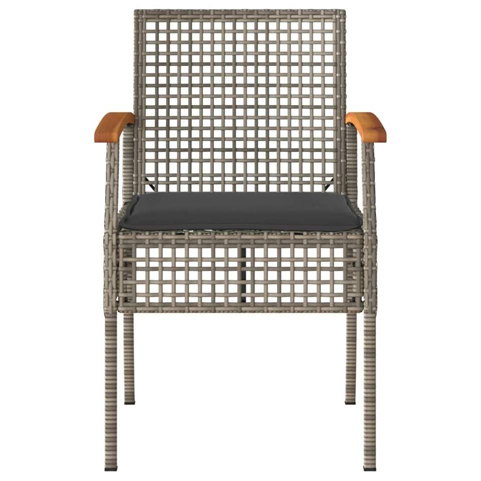 3-Piece Gray Poly Rattan Acacia Wood Bistro Set with Cushions Garden Bistro Table and Chairs