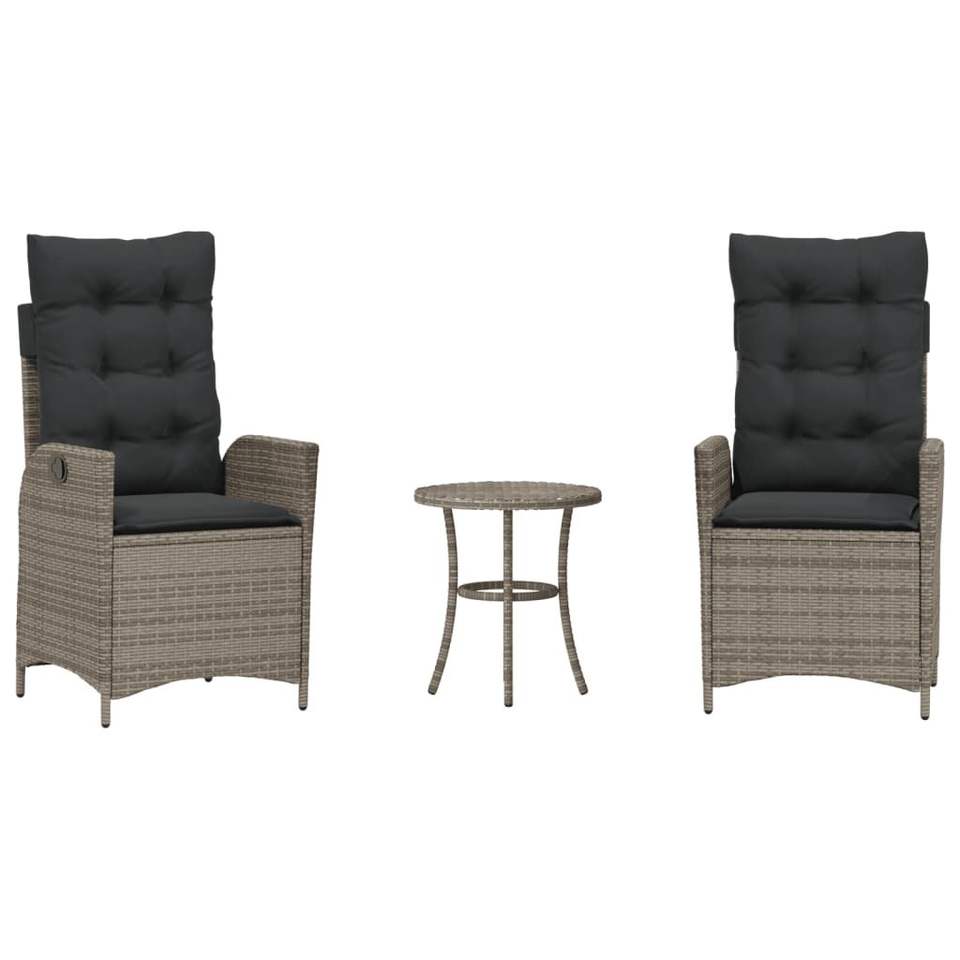 3-Piece Gray Poly Rattan Bistro Set with Cushions Garden Sets