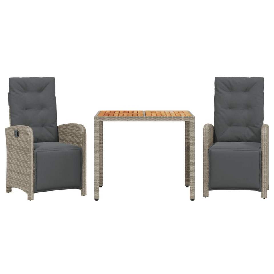 3 pezzi grigio Poly Rattan bistrot Set con cuscini da giardino