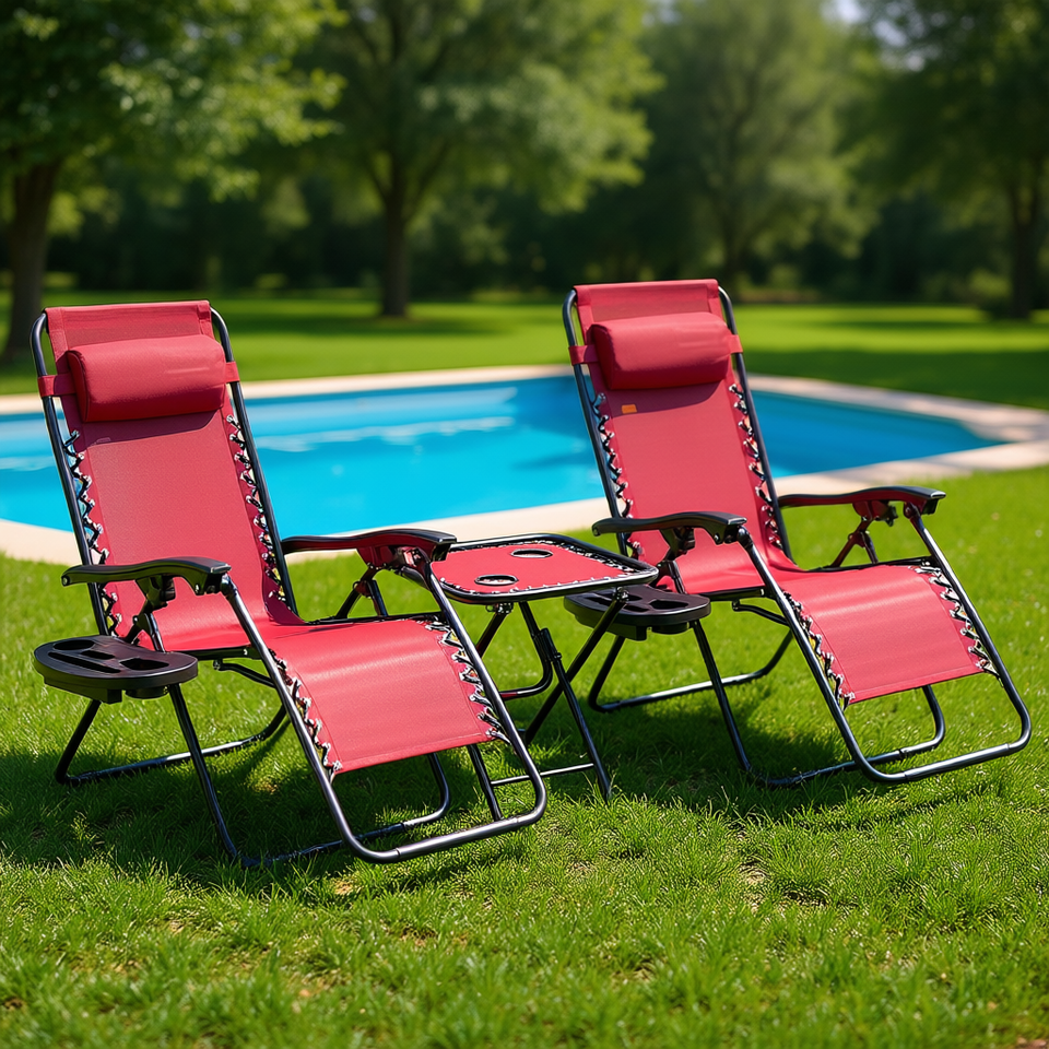 Set di 3 Sedie Reclinabili Grigie a Gravità Zero con Tavolino Laterale per Giardino e Campeggio