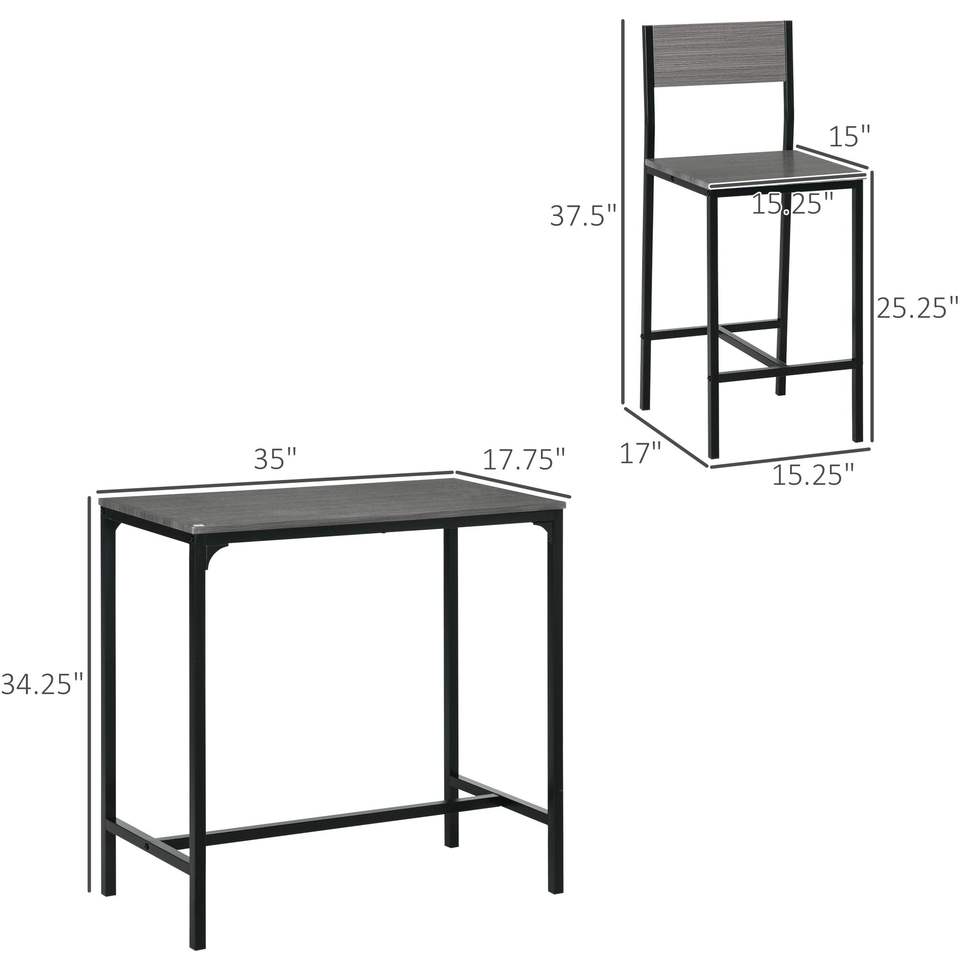 3-Piece Industrial Gray Breakfast Table Set Counter Height Kitchen Table with Bar Stools for 2 People Restaurant Dining Set