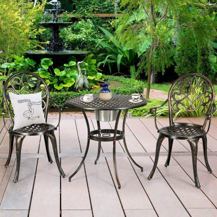 Set Bistrot da Esterno in 3 Pezzi con Secchiello per Ghiaccio Rimovibile Integrato per Feste in Giardino