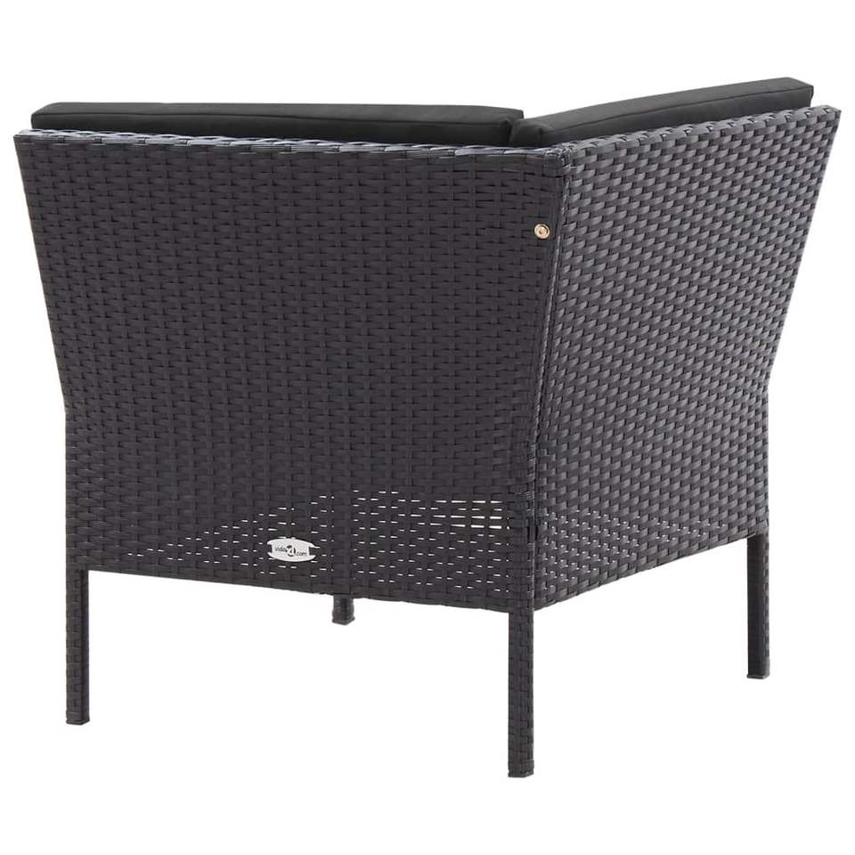 Set salotto in 3 pezzi in Poly Rattan nero con comodi cuscini mobili da esterno per il tempo libero