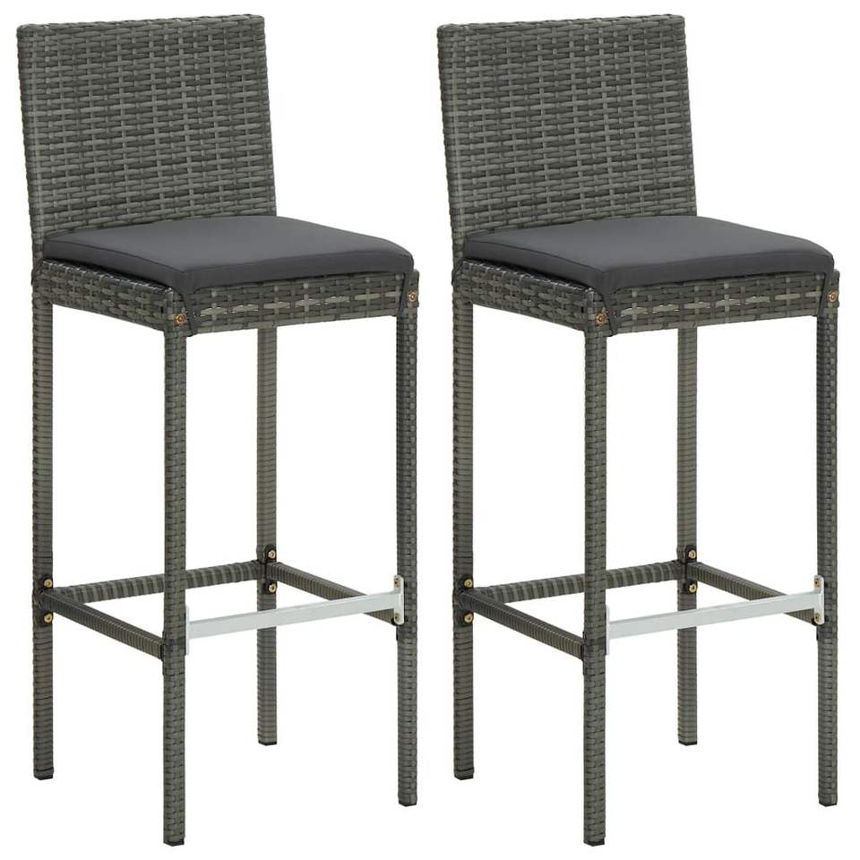 Set da Bar in Poly Rattan grigio 3 pezzi con cuscini mobili da esterno