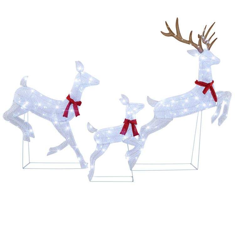 Set di 3 Renne Natalizie Pre-Illuminato per Decorazioni Luminose