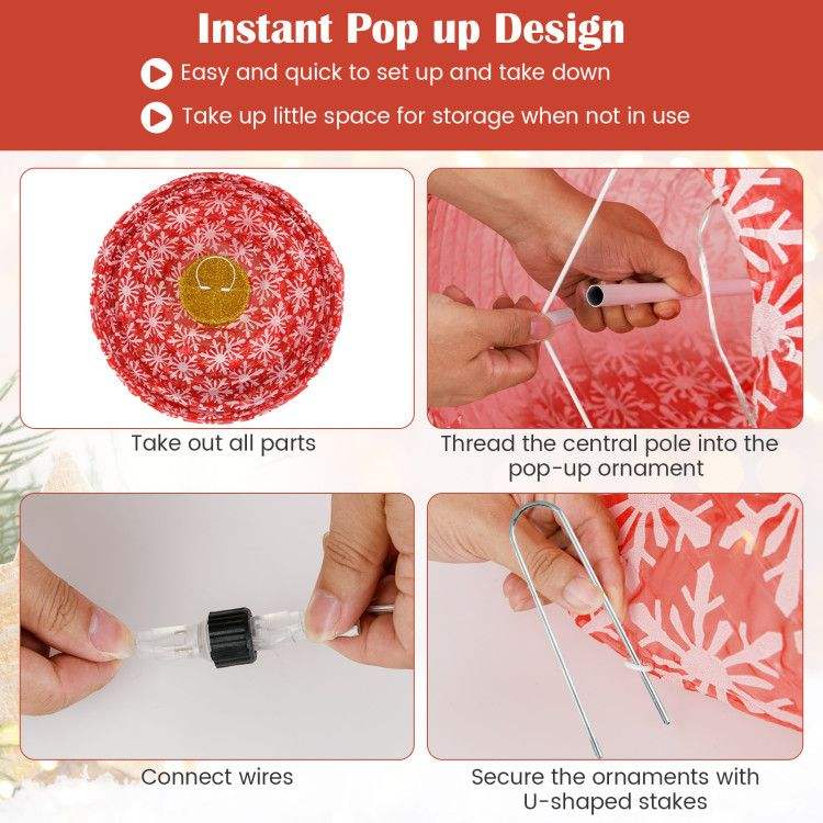 Set di 3 Palline di Natale Pre-Illuminate Pop-Up con Luci LED Bianco Caldo per Decorazioni Albero