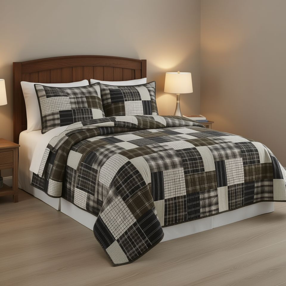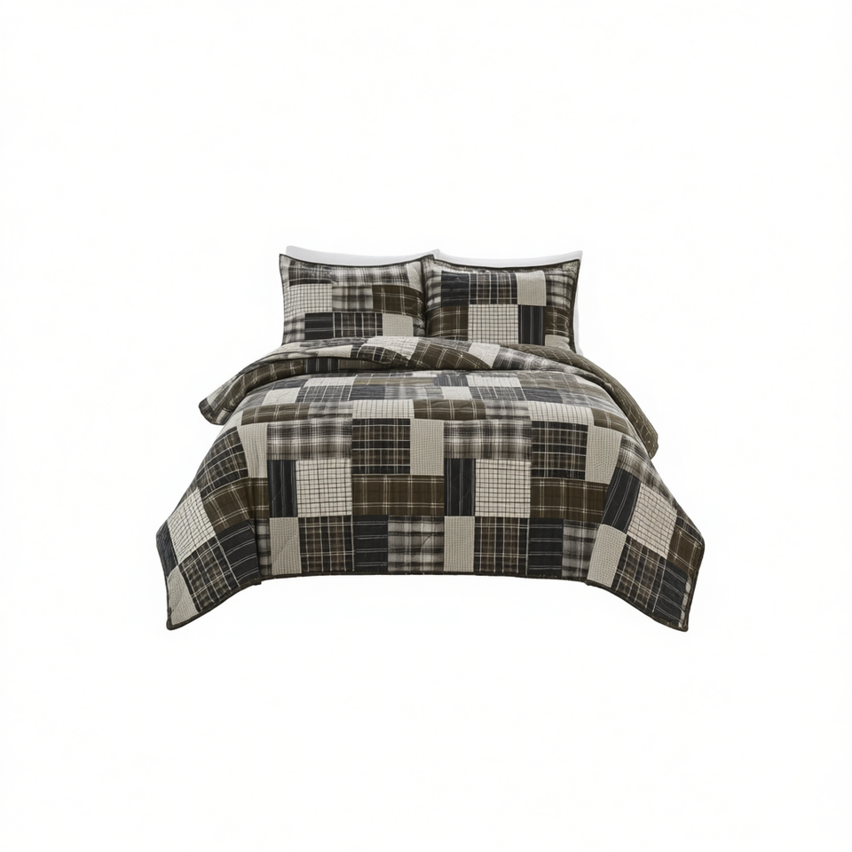 D0100HR2CYJ Quilt Set Full Queen Reversible Plaid Patchwork Bedding 3 Piece All Season Home Textile