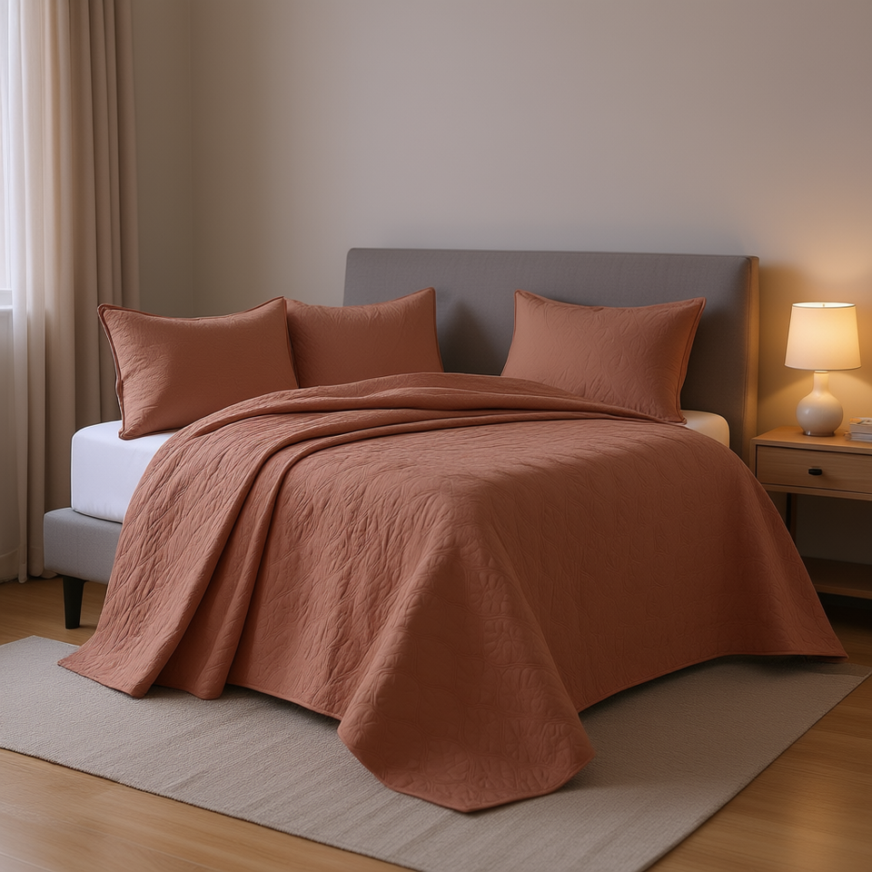 D0100HR2L4J Set Trapuntato Reversibile 3 Pezzi, Design Moderno Tinta Unita, Decorazione Casa per Tutte le Stagioni
