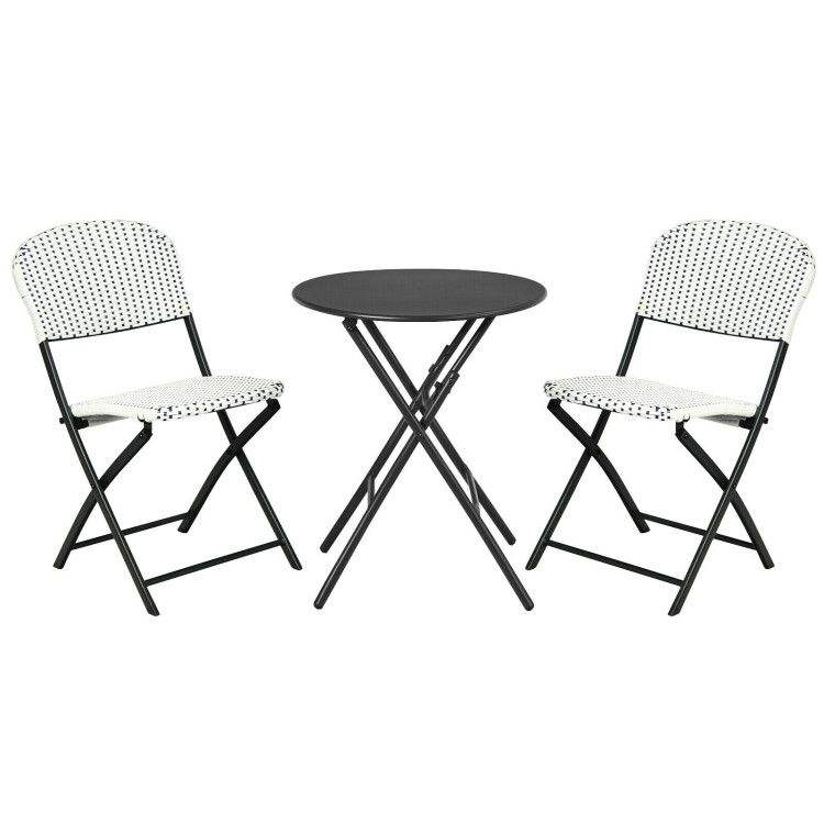 Set da Pranzo Rotondo in 3 Pezzi con 2 Sedie, Arredamento da Giardino in Rattan per Patio