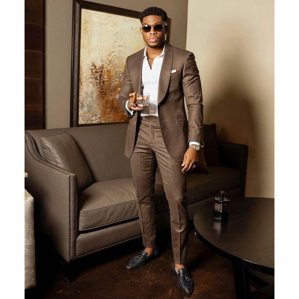 Completo da Uomo 3 Pezzi Slim Fit in Lana Pettinata/Poliestere Stile Britannico di Lusso, Tinta Unita, Antipiega, per Matrimonio, con Giacca Monopetto