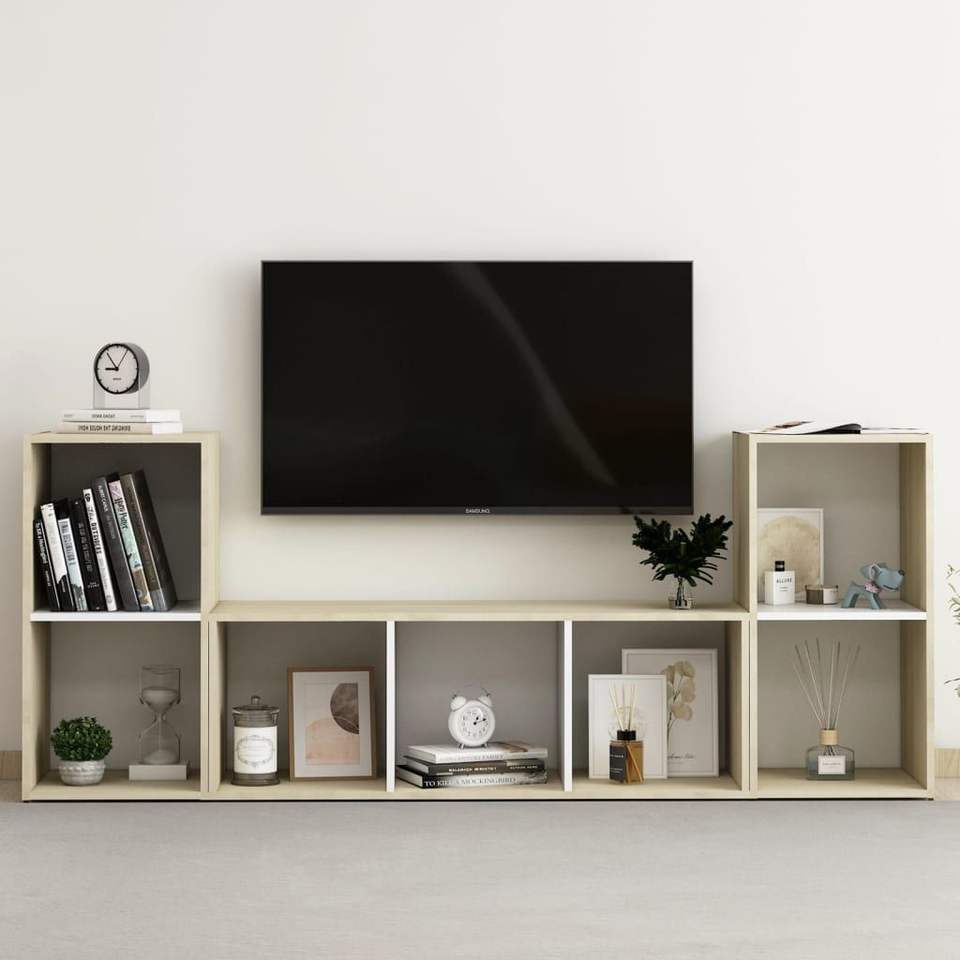3-Piece White and Sonoma Oak TV Cabinet Set Engineered Wood for Living Room