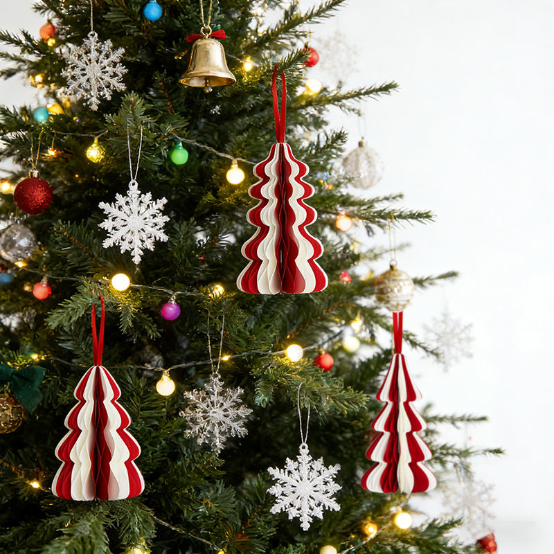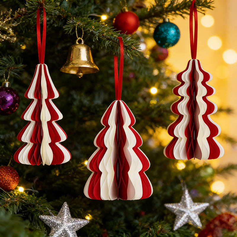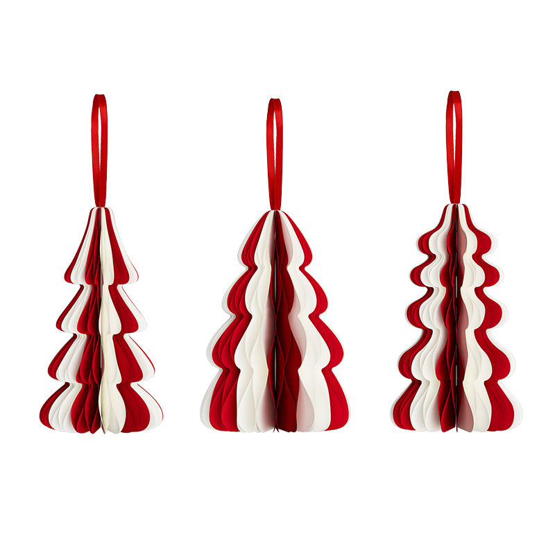 Set di 3 Decorazioni Natalizie Rosse e Bianche, Pendenti in Carta per Albero di Natale, Decorazioni Festive per Casa e Feste