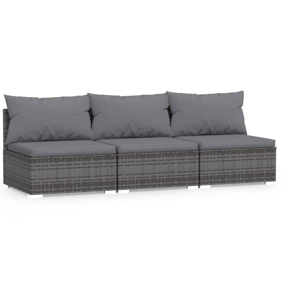 Divano in Poly Rattan grigio 3 posti con cuscini divani da giardino