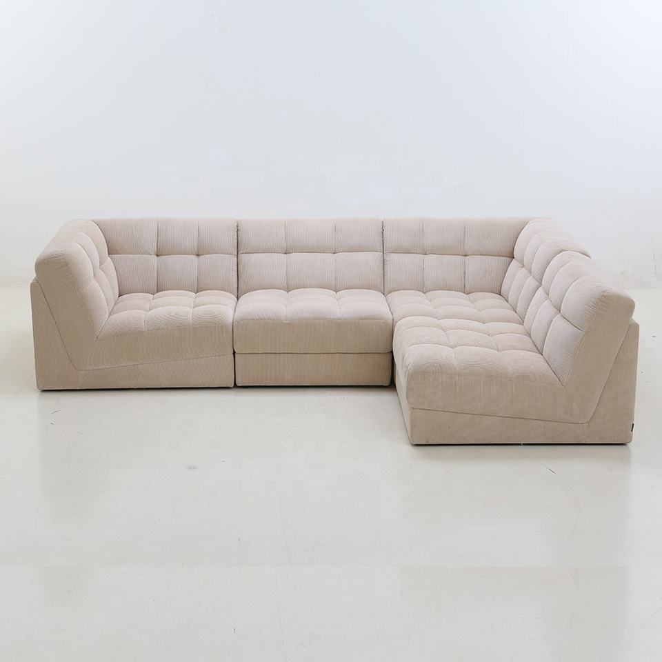 3 Seat Sectional Sofa Living Room Modular Beige White Corduroy Fabric Sofa Set Corner