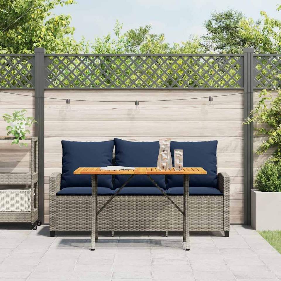 Divano da Giardino a 3 Posti in Polyrattan Grigio con Cuscini e Tavolino Inclusi
