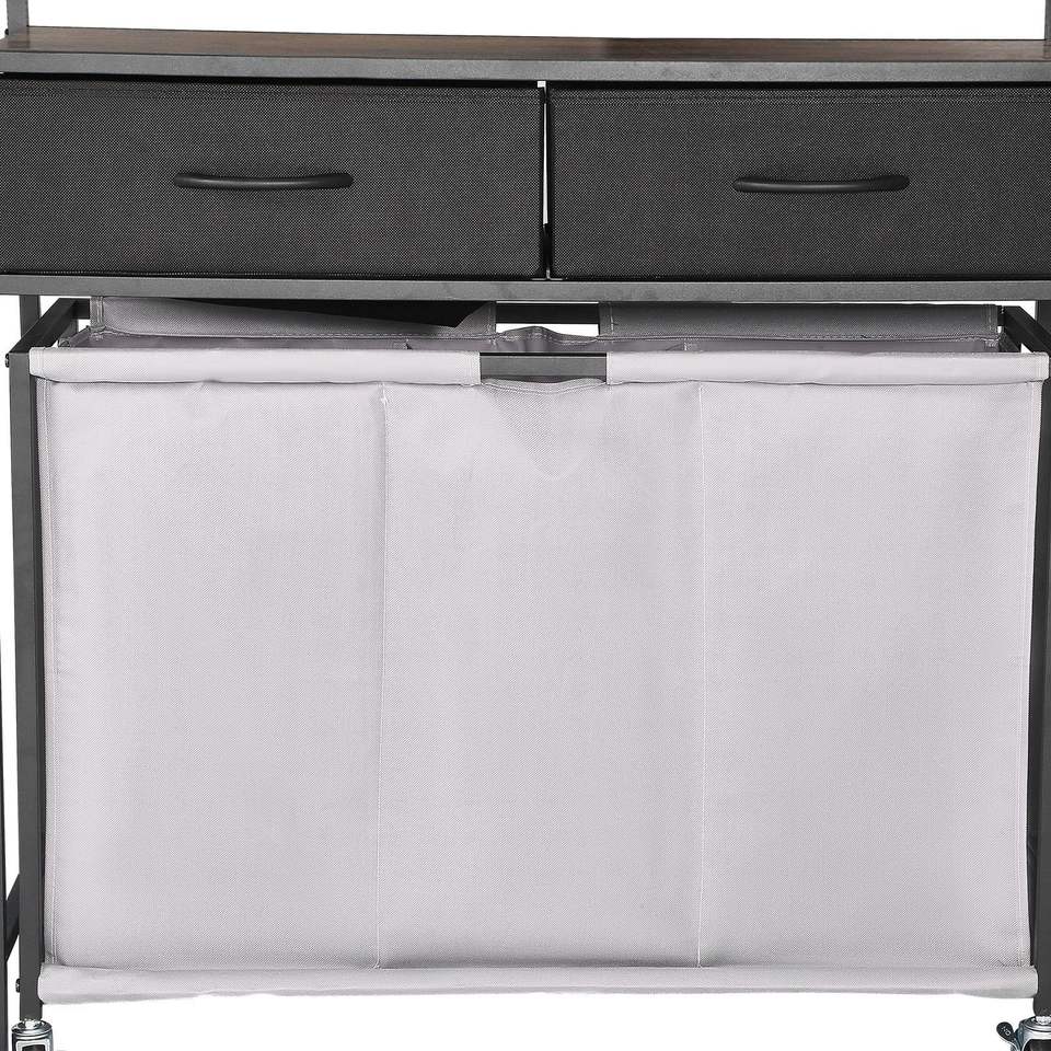 3-Section Rolling Laundry Sorter with 2 Drawers and Hooks Wheels Pull-Out Basket Organizer Storage Rolling Hamper